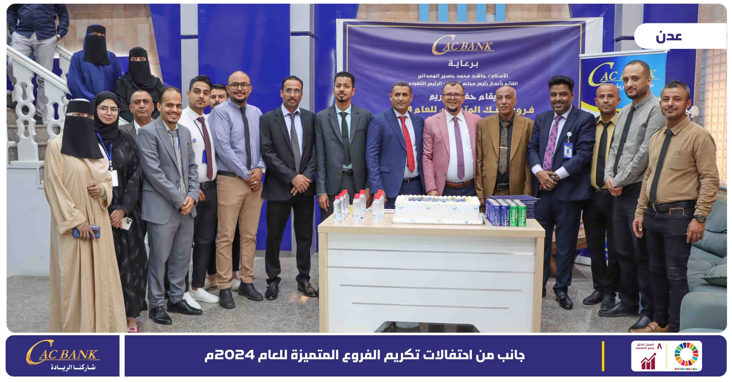 وأكد نائب الرئيس التنفيذي لقطاع العمليات المصرفية الاستاذ/ رفيق القباطي خلال تكريم الفروع على أهمية الدور الذي تلعبه الفروع في تعزيز ثقة العملاء وتحقيق النمو المستدام، مشيداً بالتفاني والجهود المبذولة من قبل الفرق العاملة، كما شدد البنك على استمراره في دعم وتحفيز كوادره، إيمانًا منه بأن النجاح المؤسسي يعتمد على الأداء المتميز لموظفيه.