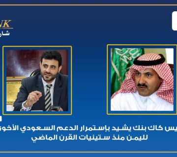 بعث الأستاذ حاشد محمد الهمداني، القائم بأعمال رئيس مجلس الإدارة – الرئيس التنفيذي لبنك التسليف التعاوني والزراعي (كاك بنك)، برقية تهنئة إلى حكومة الدكتور شايع الزنداني بمناسبة نيلها ثقة قيادة المجلس الرئاسي.