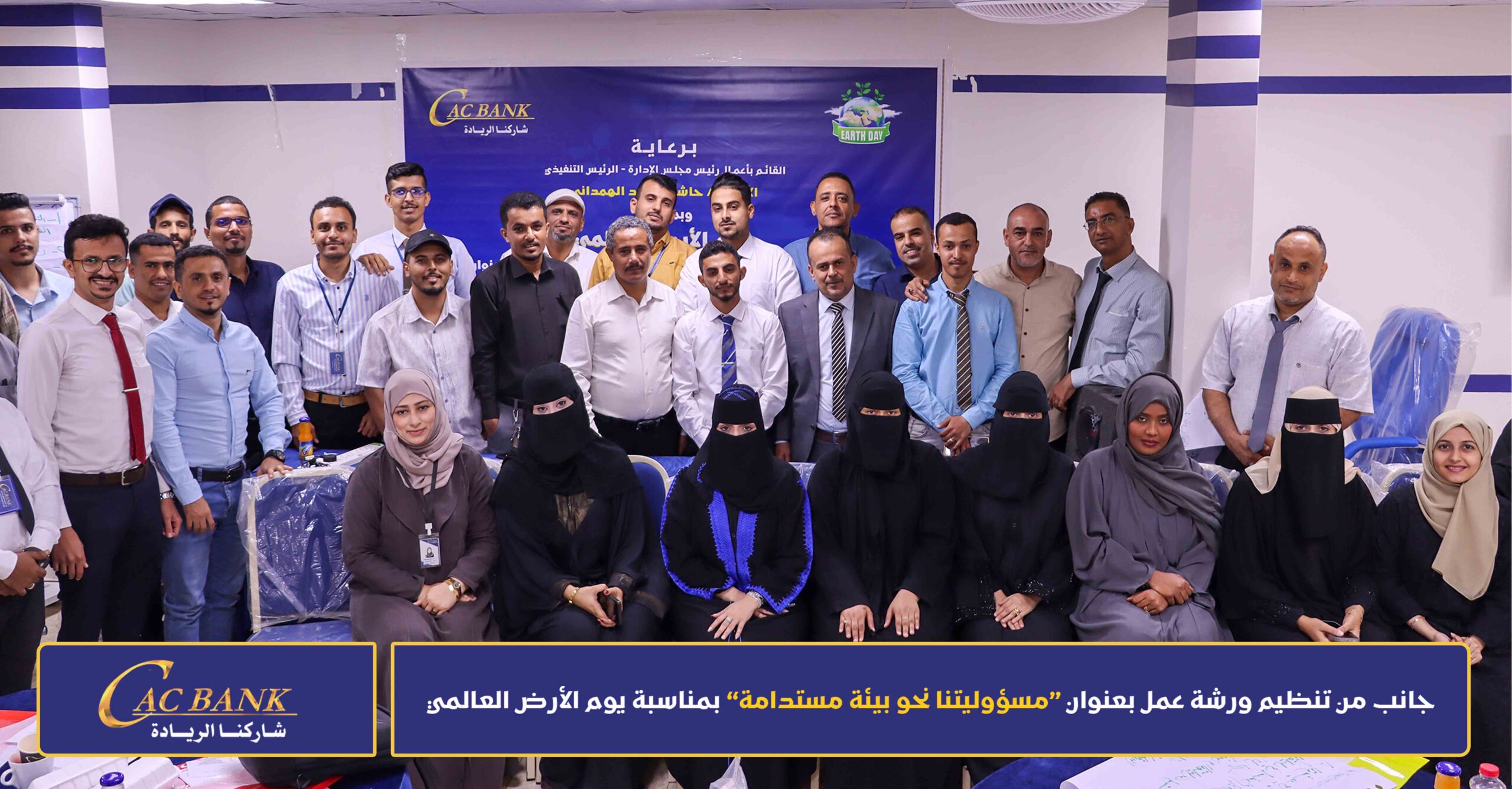قدّم الورشة الدكتور عبد الرقيب العكيشي، والتي استهدفت عدد من موظفي مختلف الادارات والفروع في البنك، وتطرقت الورشة إلى أهمية الحفاظ على البيئة وتعزيز الممارسات المستدامة في المؤسسات والمجتمعات، كما ناقشت أبرز التحديات البيئية التي تواجه العالم اليوم ودور الأفراد والمؤسسات في الحد منها.