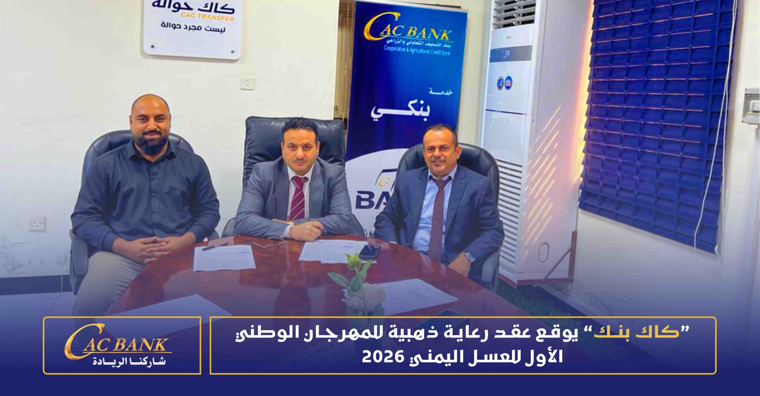 وقع بنك التسليف التعاوني والزراعي (كاك بنك) عقد رعاية ذهبية للمهرجان الوطني الأول للعسل اليمني، المقرر إقامته خلال شهر أبريل 2026، في خطوة تعكس التزام البنك بدعم القطاع الزراعي وتعزيز المنتجات الوطنية ذات الميزة التنافسية.