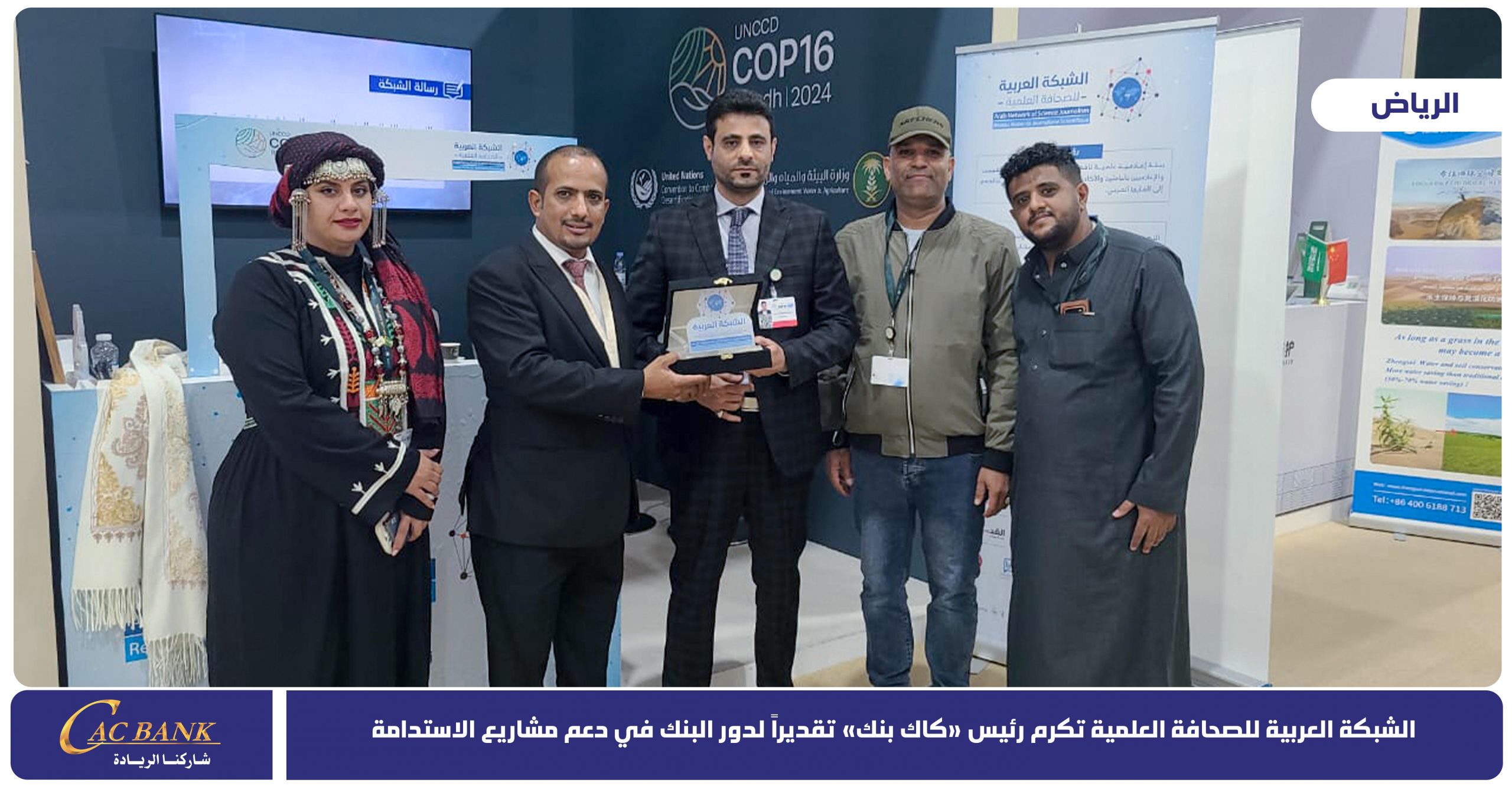 وجاء هذا التكريم على هامش مشاركة كاك بنك في الدورة السادسة عشر لمؤتمر الأطراف التابع للأمم المتحدة لمكافحة التصحر COP16، المقام في عاصمة المملكة العربية السعودية الرياض خلال الفترة من 2_13 من شهر ديسمبر الجاري 2024،
