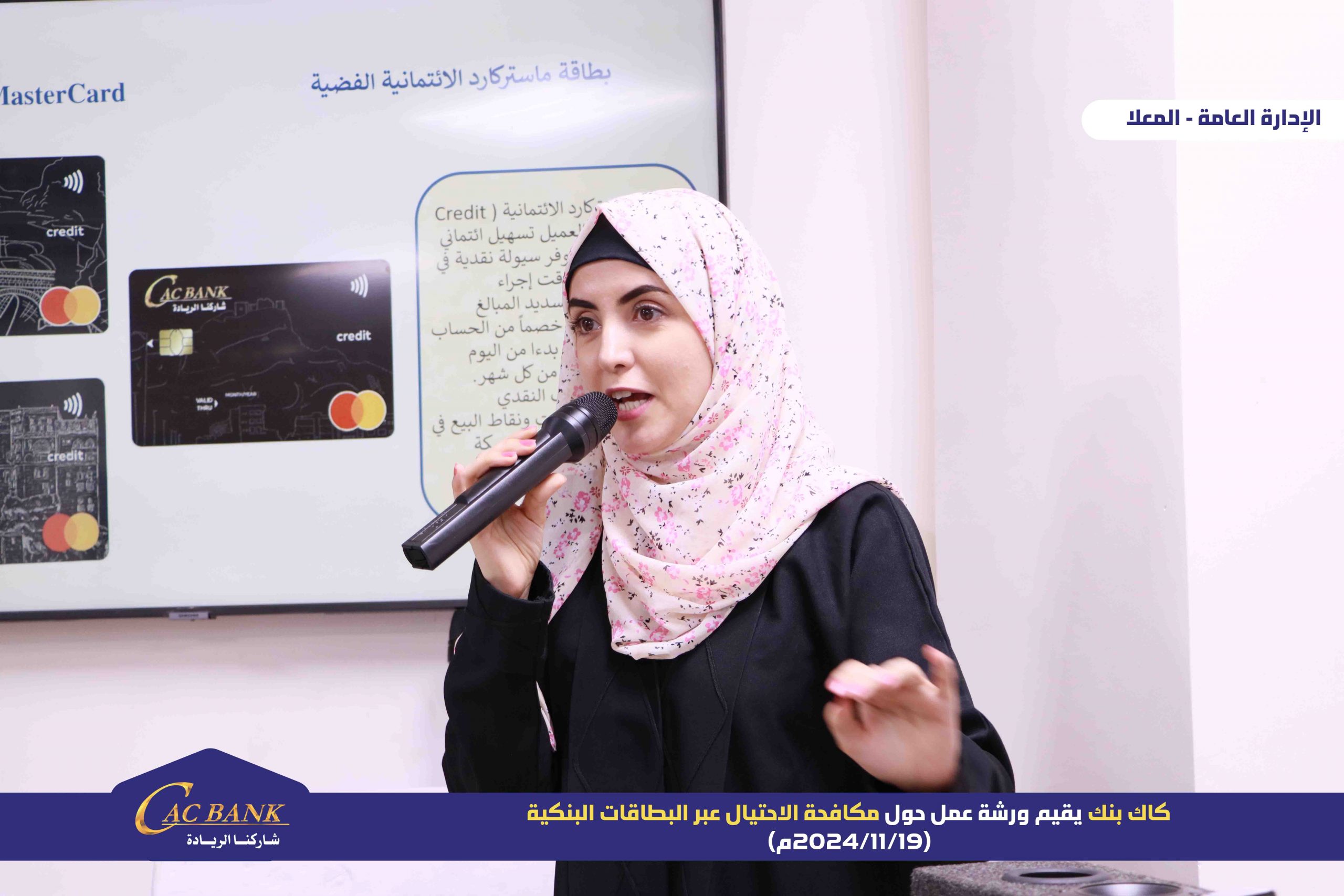 أقام مركز التدريب والتأهيل في بنك التسليف التعاوني والزراعي «كاك بنك» بعدن صباح اليوم الثلاثاء ورشة عمل حول مكافحة الاحتيال عبر البطاقات البنكية لعدد من موظفي إدارات وفروع البنك في مبنى الإدارة العامة بالمعلا، ضمن فعاليات الأسبوع العالمي للتوعية من الاحتيال، الممتدّ خلال الفترة من 17 إلى 23 من شهر نوفمبر الجاري، والمقدمة من قبل المهندسة سماح جرهوم.