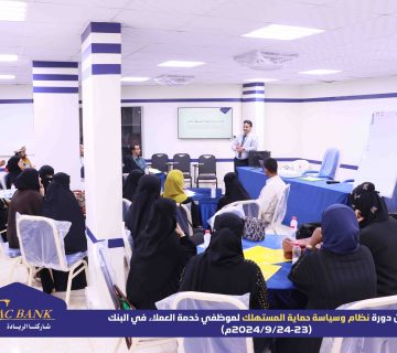 وتأتي الدورة التي أقيمت في مبنى إدارة البنك بالمعلا واستمرت لمدة يومين، واستهدفت عدداً من موظفي وموظفات الإدارات وخدمة العملاء، ضمن سياسة وتوجهات قيادة البنك ممثلة بالقائم بأعمال رئيس مجلس الادارة الاستاذ "حاشد الهمداني"، والهادفة إلى تنمية قدرات الكادر الوظيفي وتعزيز مهاراتهم، بما يواكب القوانين المنظمة واللوائح المتبعة. ... اقرأ أكثر